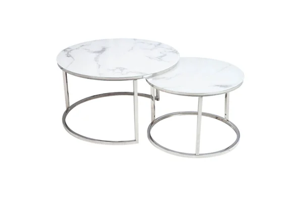 Zestaw ław Atlanta B II to dwa urocze stoliki kawowe w srebrnej ramie w wersji kompaktowej.