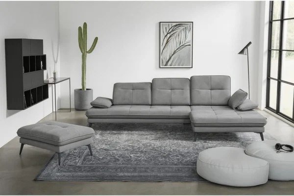 Niezwykle luksusowy narożnik o niespotykanym nigdzie indziej designie. Bardzo ciekawe wykończenie – chromowane nogi, wygodne pikowane siedzisko a dla pełnej wygody regulowane oparcia oraz podłokietniki