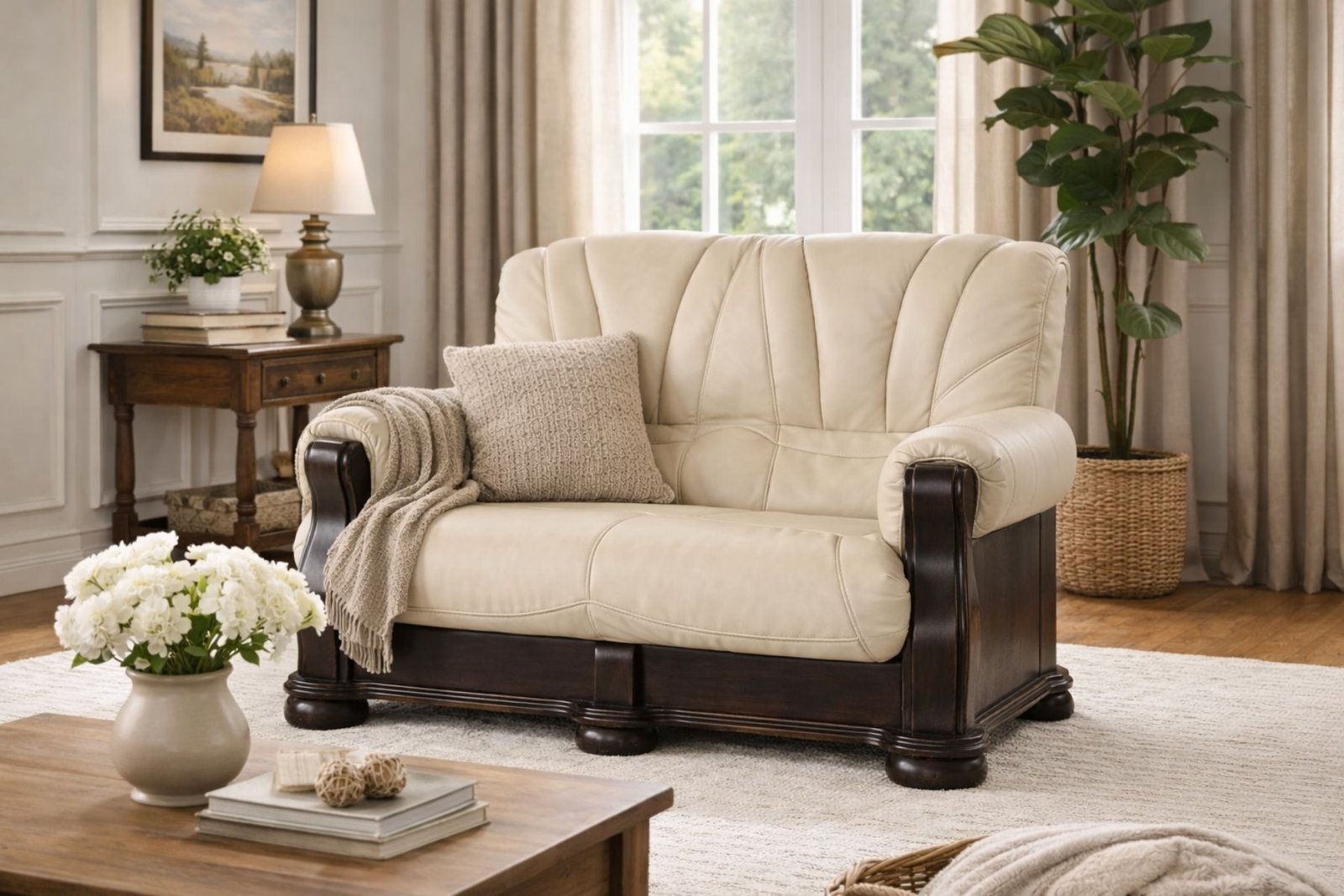 Elegancki model Cezar III to połączenie klasycznego wzornictwa z solidnym wykonaniem. Charakterystyczne, staranne przeszycia, wygodne oparcia oraz masywne podłokietniki zapewniają wysoki komfort użytkowania i ponadczasowy wygląd. Całość osadzona jest na efektownym, drewnianym stelażu, który nadaje meblom stabilności i elegancji.