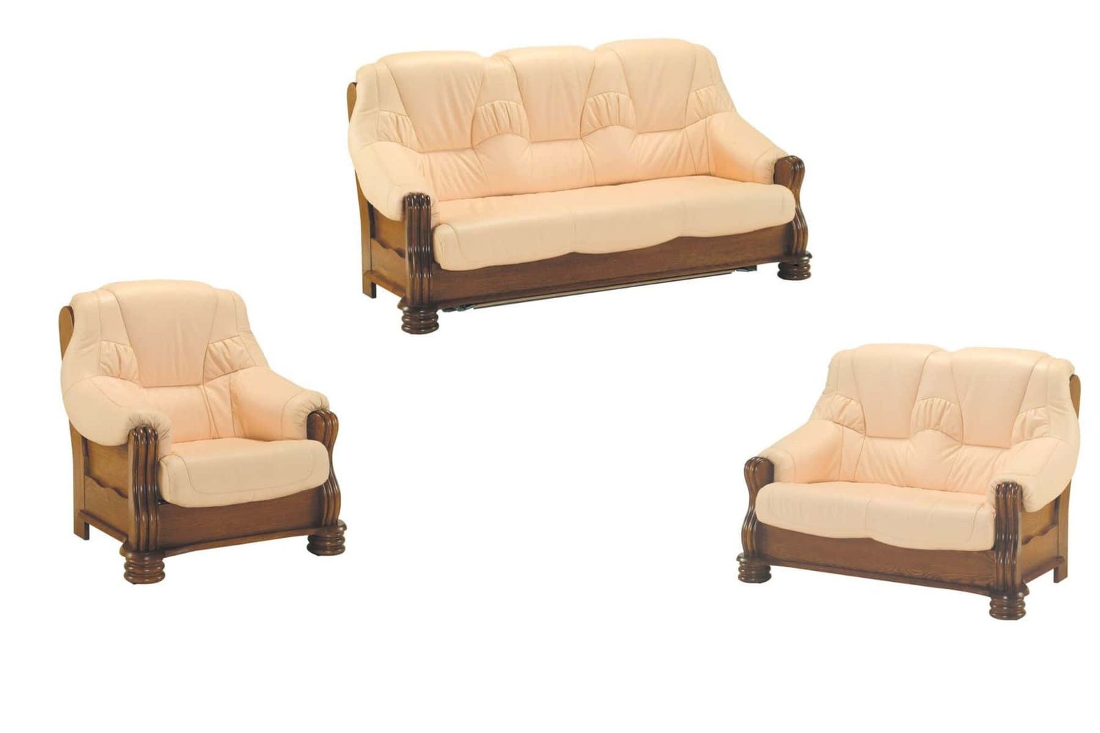 Elegancki komplet Adam to połączenie klasycznego wzornictwa z solidnym wykonaniem. Charakterystyczne, staranne przeszycia, wygodne oparcia oraz masywne podłokietniki zapewniają wysoki komfort użytkowania i ponadczasowy wygląd. Całość osadzona jest na efektownym, drewnianym stelażu, który nadaje meblom stabilności i elegancji.