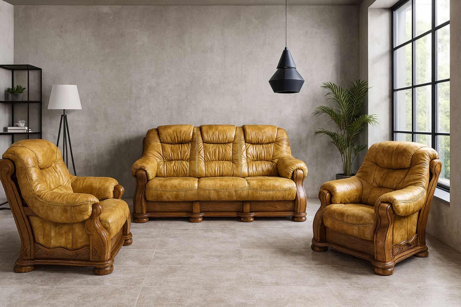 Elegancki model Cezar I to połączenie klasycznego wzornictwa z solidnym wykonaniem. Charakterystyczne, staranne przeszycia, wygodne oparcia oraz masywne podłokietniki zapewniają wysoki komfort użytkowania i ponadczasowy wygląd. Całość osadzona jest na efektownym, drewnianym stelażu, który nadaje meblom stabilności i elegancji.