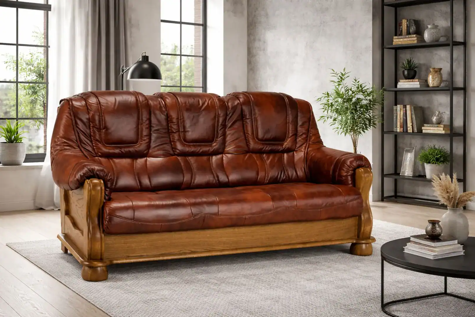 Solidna konstrukcja oparta na drewnianym stelażu gwarantuje stabilność, trwałość oraz wieloletnie użytkowanie bez utraty walorów estetycznych. Komfortowe siedziska oraz odpowiednio wyprofilowane oparcia zapewniają wysoki komfort wypoczynku, zarówno podczas codziennego relaksu, jak i spotkań z rodziną czy gośćmi.