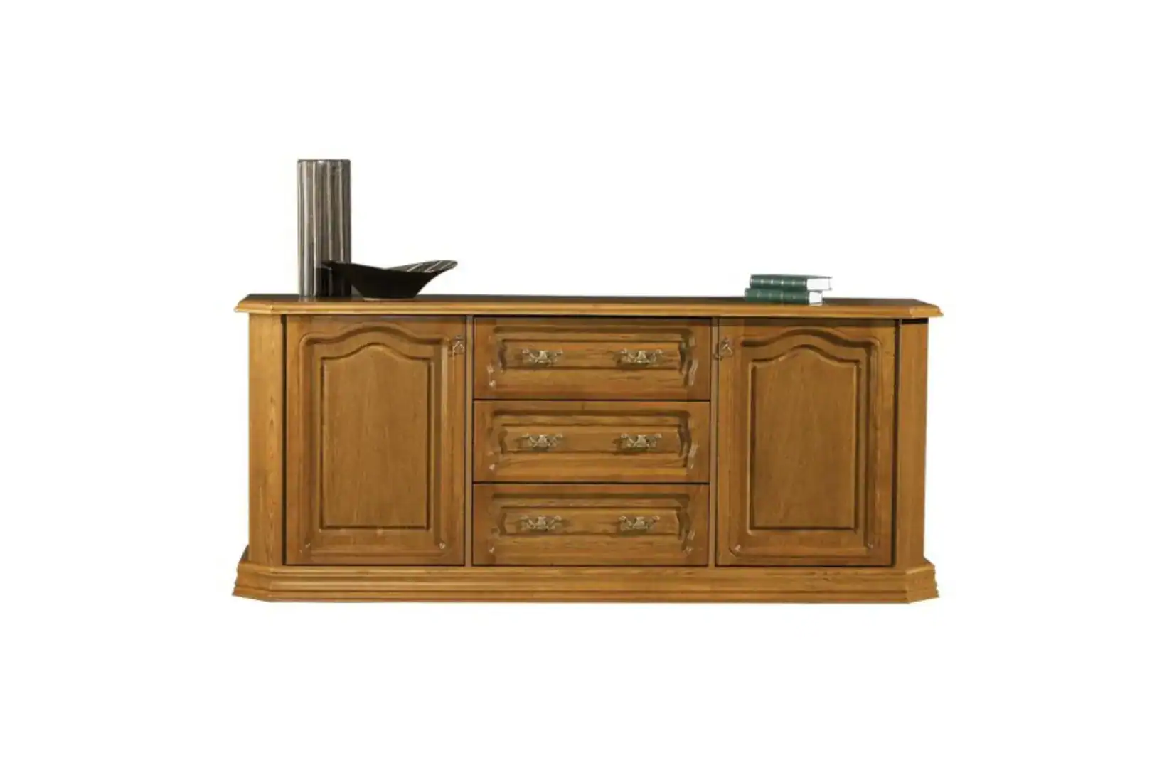Naturalna kolorystyka drewna w połączeniu z wyraźnym usłojeniem sprawia, że każdy mebel wygląda szlachetnie i niepowtarzalnie. Przemyślany układ szuflad, półek i witryn zapewnia wygodę użytkowania oraz dużą funkcjonalność, bez kompromisów w estetyce.