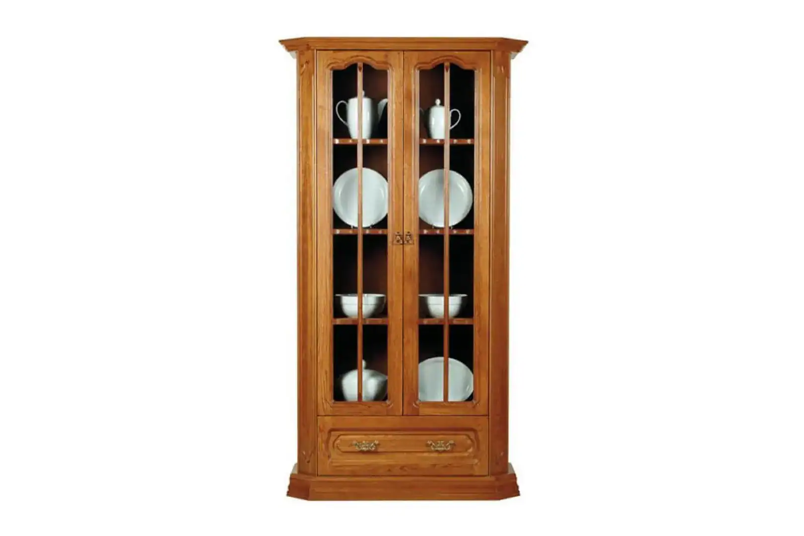 Naturalna kolorystyka drewna w połączeniu z wyraźnym usłojeniem sprawia, że każdy mebel wygląda szlachetnie i niepowtarzalnie. Przemyślany układ szuflad, półek i witryn zapewnia wygodę użytkowania oraz dużą funkcjonalność, bez kompromisów w estetyce.