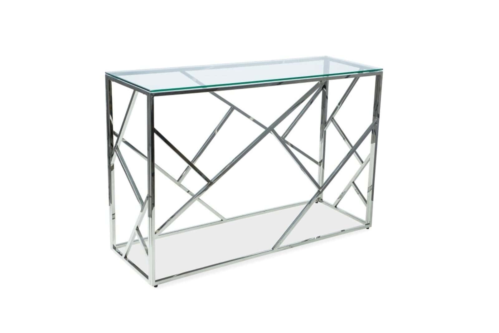 Konsola ESCADA C do salonu i przedpokoju to awangardowy dodatek, który upiększy wnętrze naszego mieszkania. Konsola posiada piękną podstawę wykonaną z mocnego metalu w błyszczącym chromowanym kolorze. Podstawa tego typu zapewnia doskonałą stabilność mebla. Blat konsolki wykonany jest z bezpiecznego szkła hartowanego nadającego całej konstrukcji delikatności i lekkości. Srebrna konsola ESCADA C może być zastosowana w salonie, jako dodatkowy stolik, na którym ustawimy dekoracyjny wazon z kwiatami lub lampkę. To mebel, który bardzo często ustawiany jest także w przedpokoju pełniąc funkcję miejsca, gdzie odkładane są klucze.