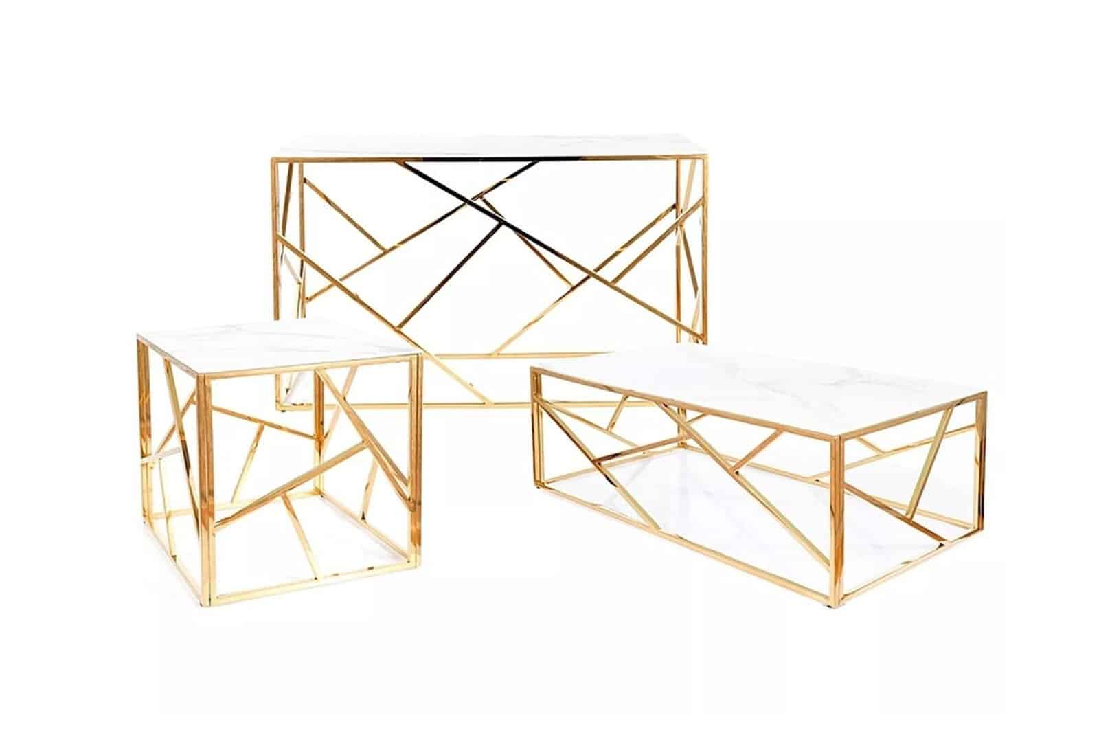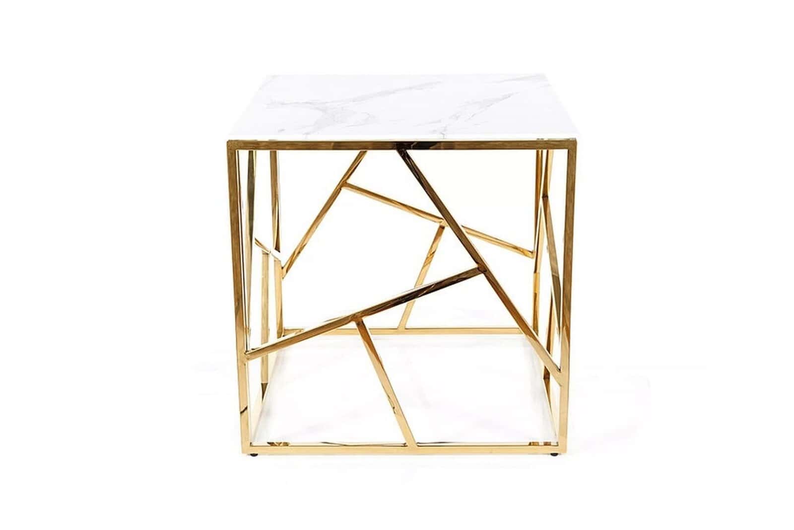 Escada II B to nowoczesność i elegancja w jednym. Blat wykonany ze szkła hartowanego z efektem białego marmuru oraz metalowy stelaż w kolorze złotym sprawia, że ława posłuży nam na długie lata. Escada II B doskonale sprawdzi się jako stolik kawowy w salonie. Ława zachwyci każdego kto lubi mieć coś oryginalnego i niebanalnego w swoim domu. Zamiennikiem mniejszej ławy może być większa Escada II A, natomiast uzupełnieniem konsola Escada II C, które dopełnią wnętrze na wiele sposobów.