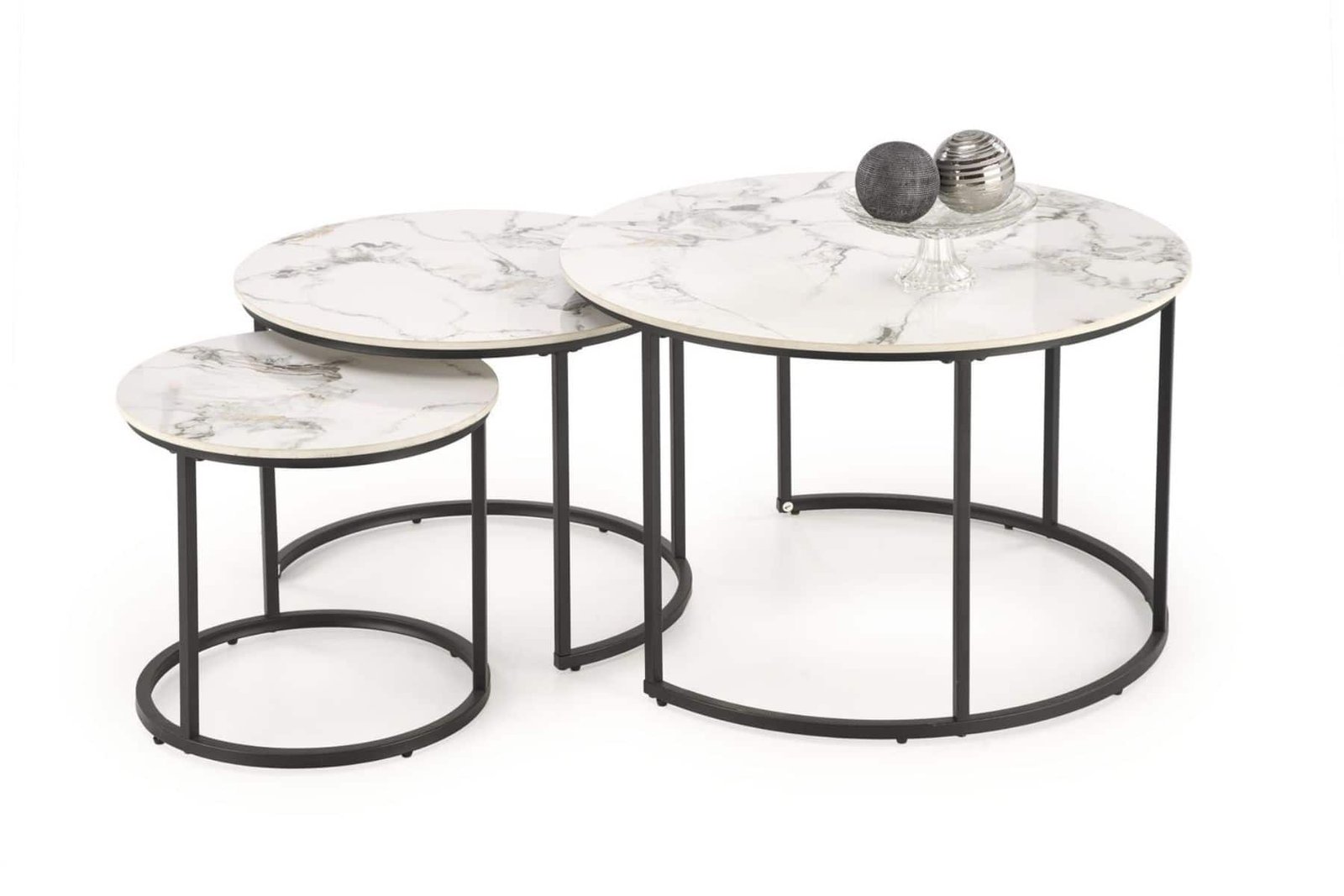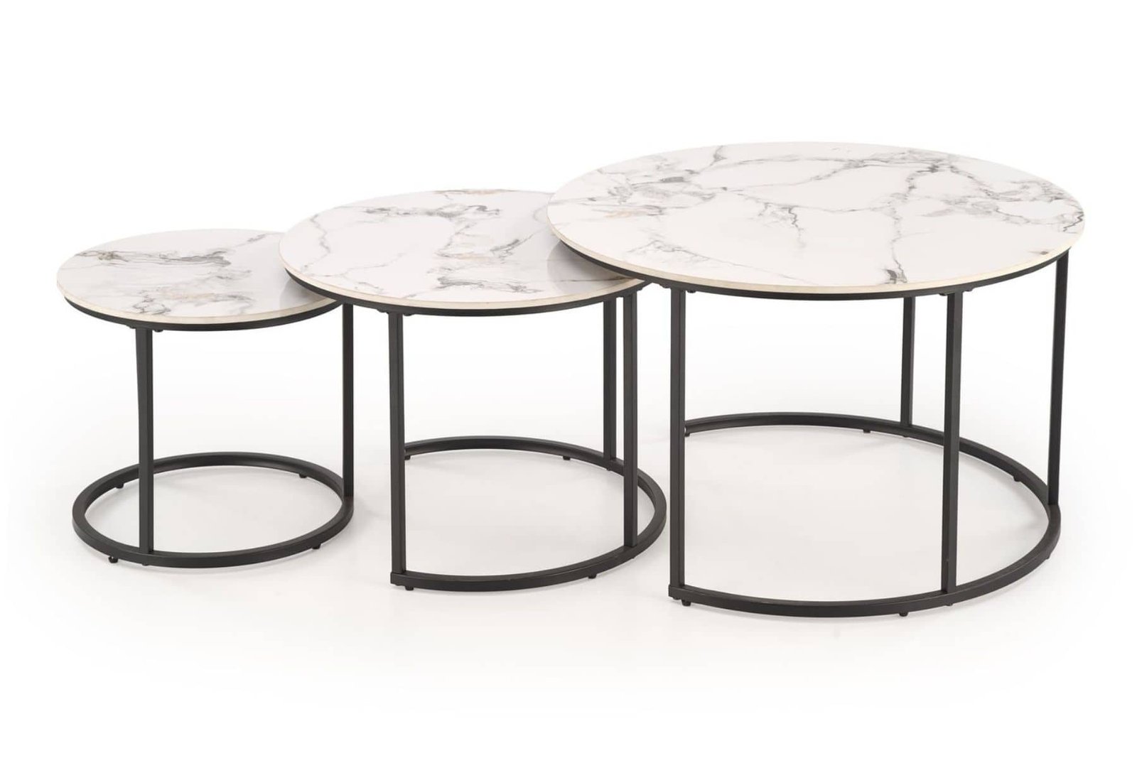 zestaw 3 ław, materiał: spiek / stal malowana proszkowo, kolor: biały marmur / czarny