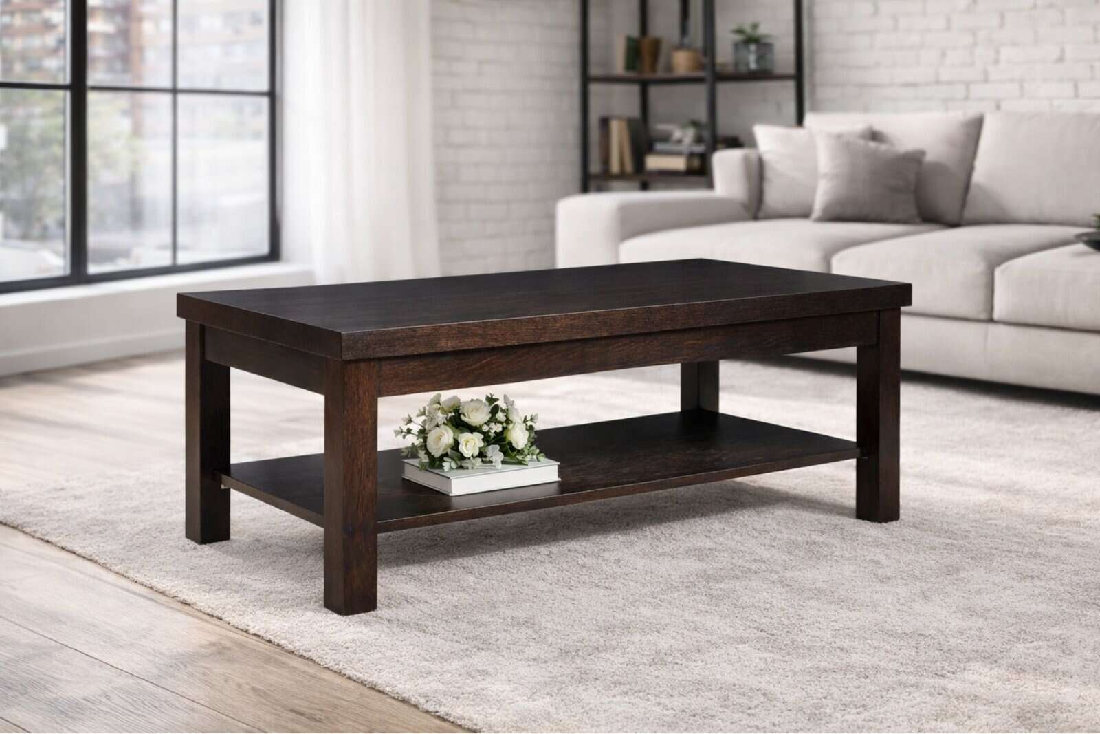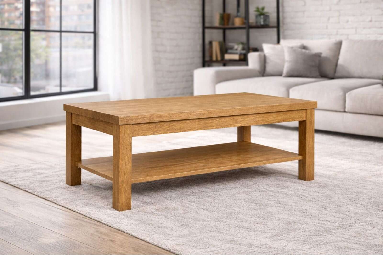 Ława Vegas z półką to funkcjonalny stolik kawowy, który dobrze sprawdzi się w salonie, strefie wypoczynkowej lub przy narożniku. Łączy prosty design z wygodą codziennego użytkowania.