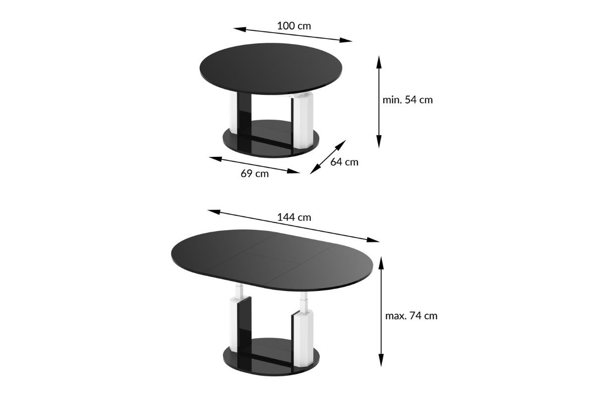 Rozkładanie blatu jest bardzo proste i funkcjonalne, dzięki zastosowanym synchronicznym prowadnicom kulkowym. Pozwala to na rozsuwanie ławy przez jedną osobę w błyskawicznym tempie. Dodatkowym atutem łóawostołu jest funkcja płynnej regulacji wysokości (na dowolną wysokość w ramach skali), w zależności od potrzeb od 54 cm (wysokość standardowej ławy) do 74 cm (wysokość standardowego stołu). Konstrukcja ławostołu, z pozoru lekka i delikatna, zapewnia stabilność przy dowolnym rozłożeniu. Wpasowując się w nowoczesne trendy meblarskie blat i podstawa ma okrągły kształt dzięki czemu cała konstrukcja nabrała lekkości.