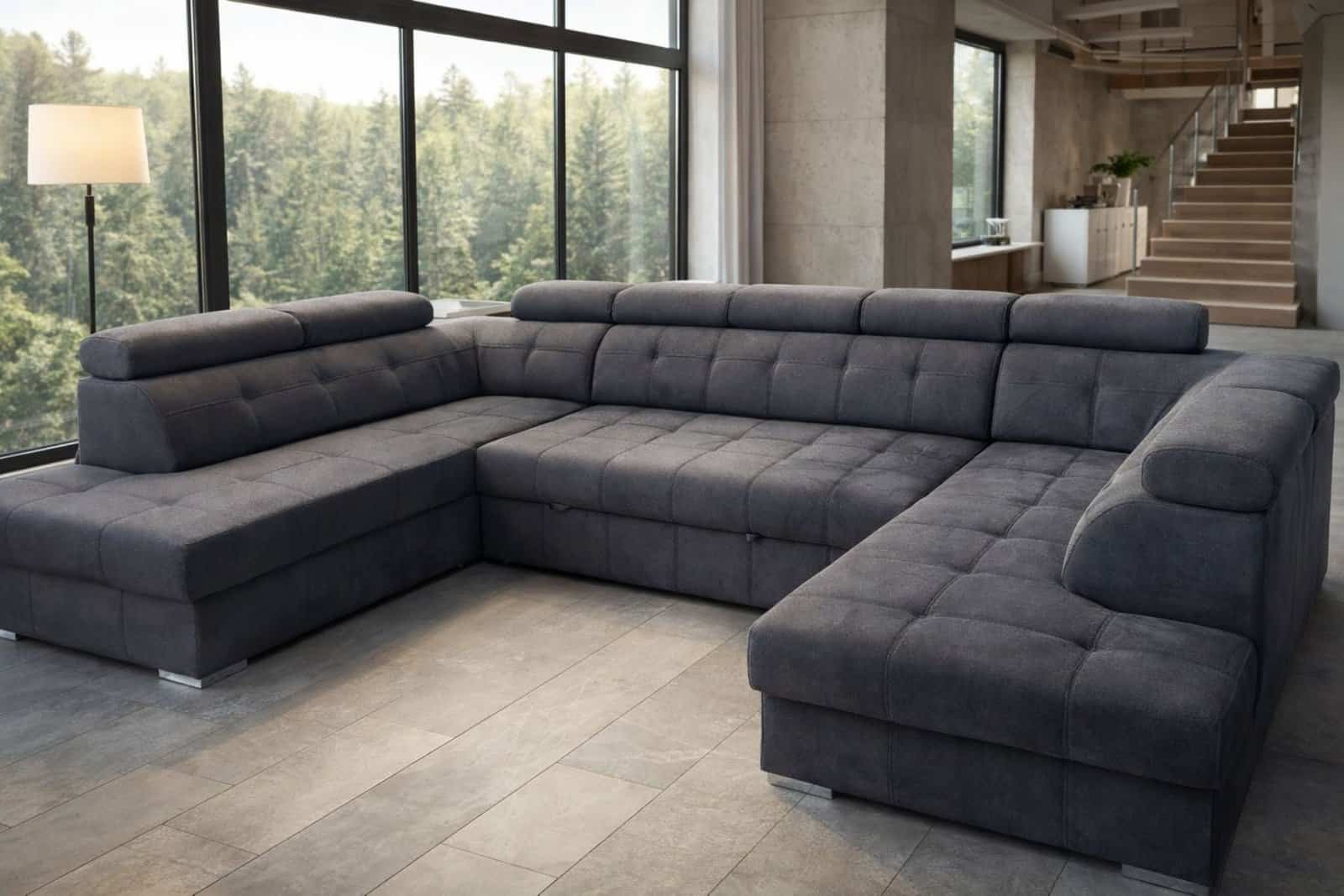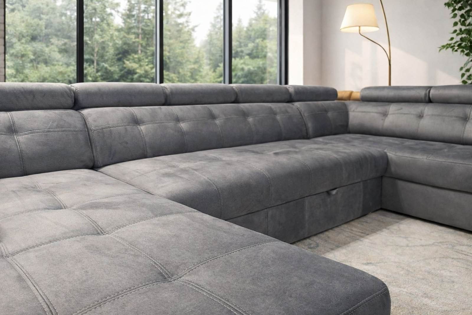 Prostą linię mebli Atlanta wzbogacają efektowne przeszycia po bokach a także pikowania na siedzisku i oparciach natomiast indywidualny kształt oraz charakter nadają mu praktyczne zagłówki, które można ustawić w różnej pozycji. Perfekcyjne wykonanie, prosty, subtelny kształt i chromowane nóżki sprawiają, że narożnik wygląda wyjątkowo. Kolekcja Atlanta wzbogacona została o praktyczną funkcję spania oraz schowek na pościel.