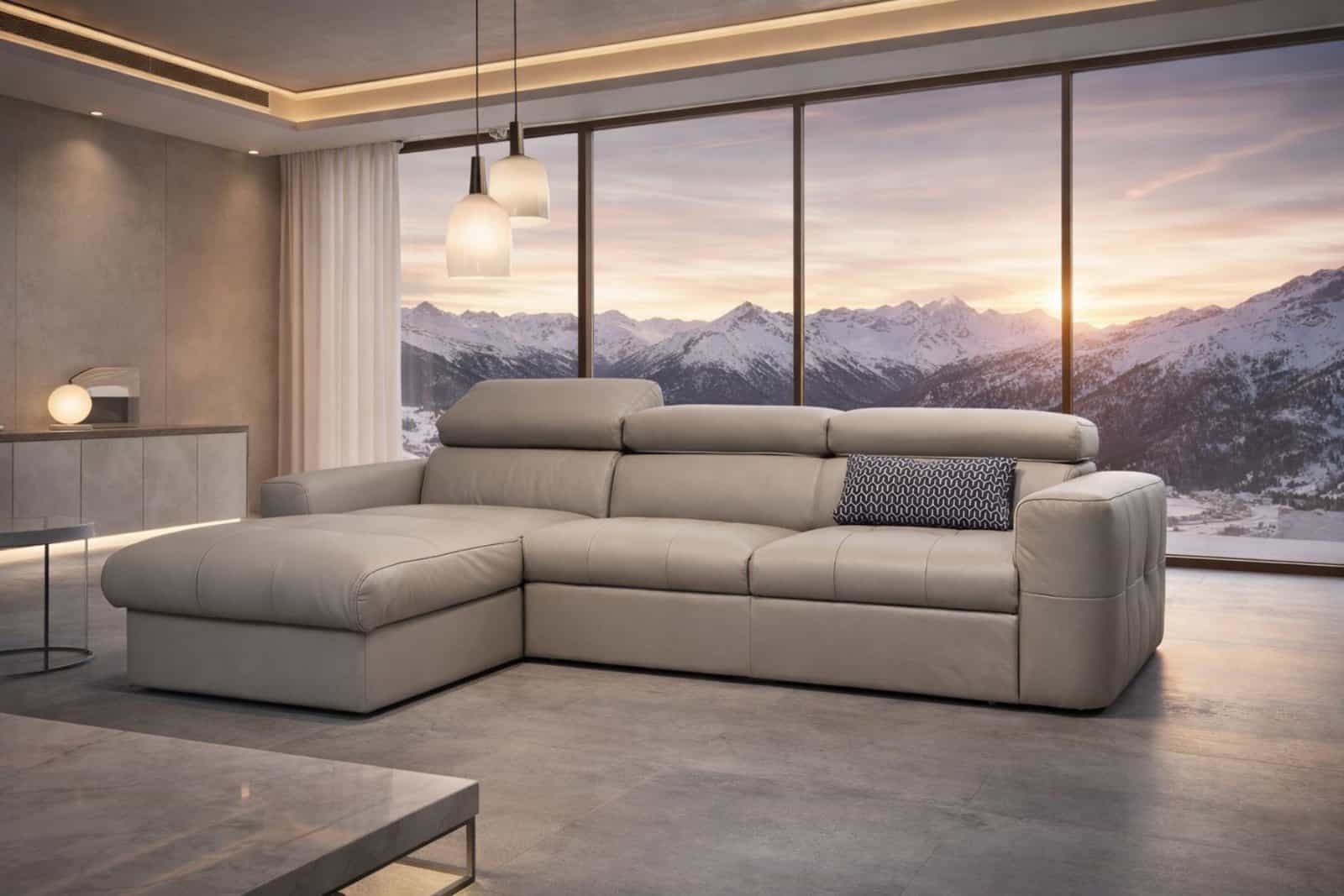 Narożnik Malibu mały ze skóry to nowoczesny narożnik do salonu o minimalistycznej formie i charakterystycznych pikowaniach na siedziskach. Regulowane zagłówki, ustawiane w kilku płaszczyznach, pozwalają dopasować wysokość i kąt oparcia do indywidualnych potrzeb. Prosta bryła z metalowymi detalami dobrze wpisuje się w nowoczesne aranżacje, a kompaktowe wymiary sprawiają, że model sprawdzi się również w mniejszych wnętrzach. Narożnik może być wyposażony w funkcję spania oraz pojemnik na pościel, dzięki czemu pełni rolę mebla wielofunkcyjnego do codziennego użytkowania.