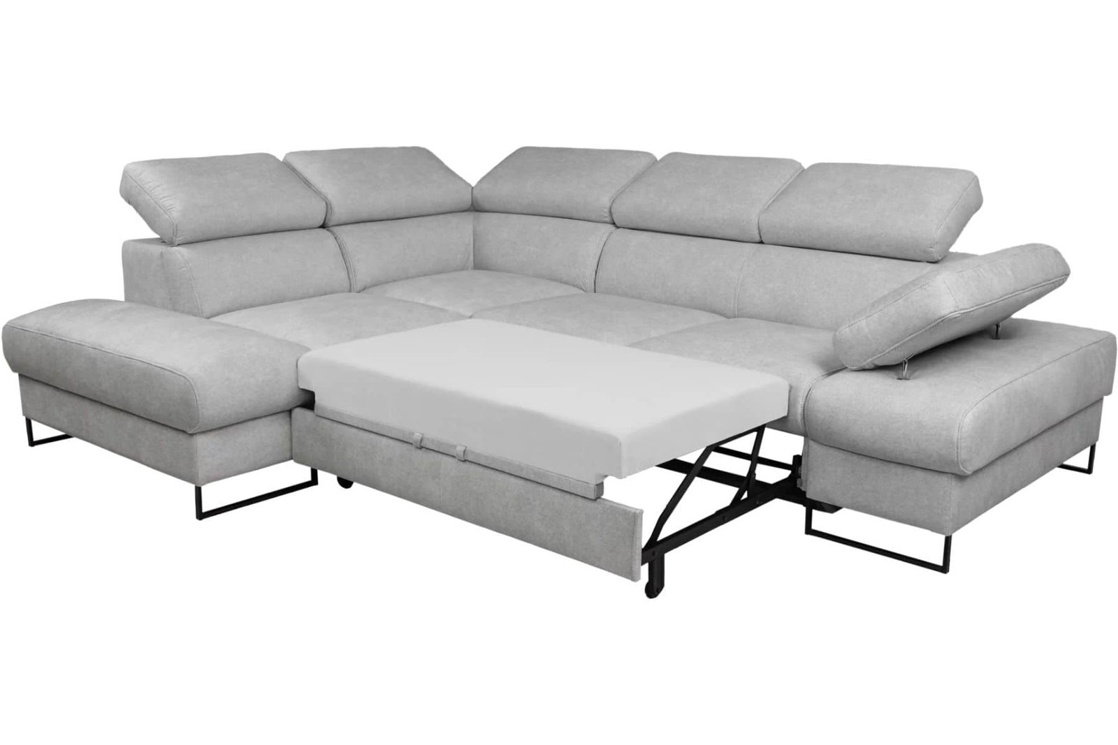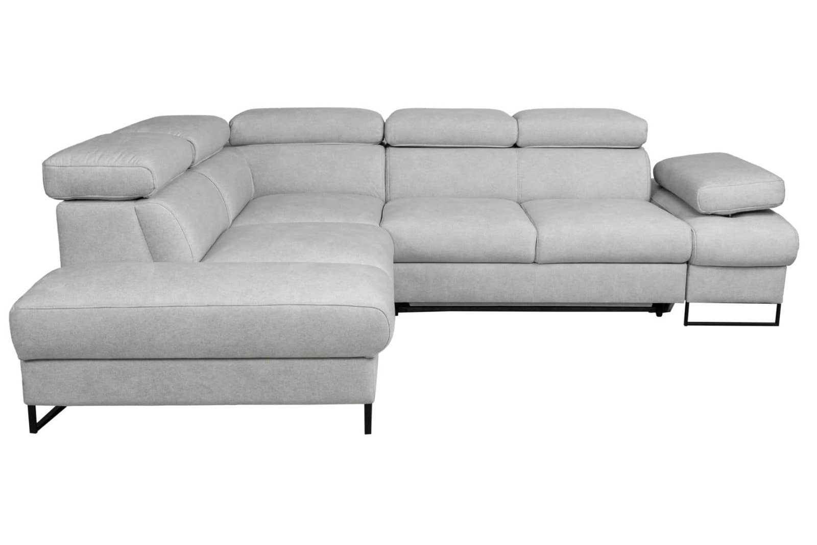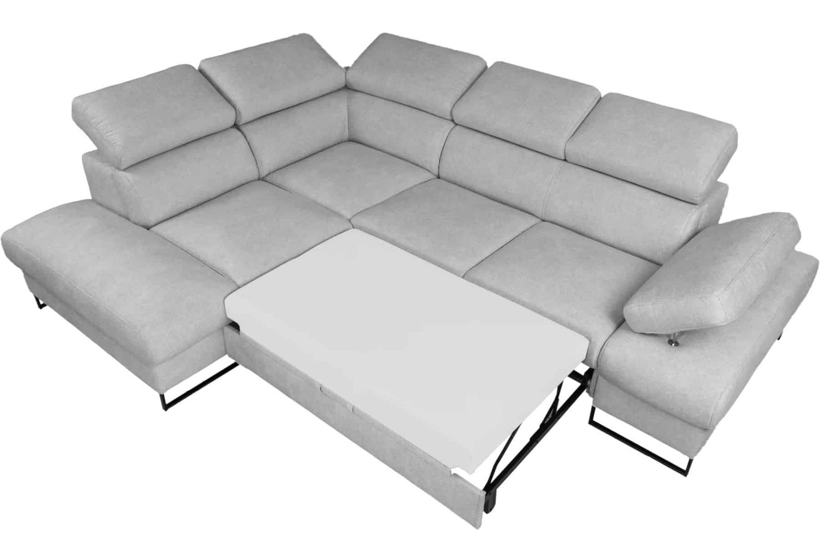 Narożnik Malibu Soft ze skóry to nowoczesny narożnik do salonu wykonany z wysokiej jakości włoskiej skóry naturalnej. Prosta, lekka bryła osadzona na smukłych metalowych nóżkach nadaje meblowi współczesny charakter i optycznie odciąża wnętrze, dzięki czemu model sprawdzi się zarówno w przestronnych, jak i bardziej kameralnych salonach. Regulowane zagłówki oraz regulowany podłokietnik umożliwiają dopasowanie pozycji oparcia do indywidualnych potrzeb, zwiększając komfort codziennego wypoczynku. Narożnik wyposażony jest w funkcję spania typu delfin oraz pojemnik na pościel w standardzie, co czyni go praktycznym rozwiązaniem do codziennego użytkowania. Malibu Soft to propozycja dla osób, które szukają nowoczesnego narożnika z funkcją spania i lekką, designerską formą.
