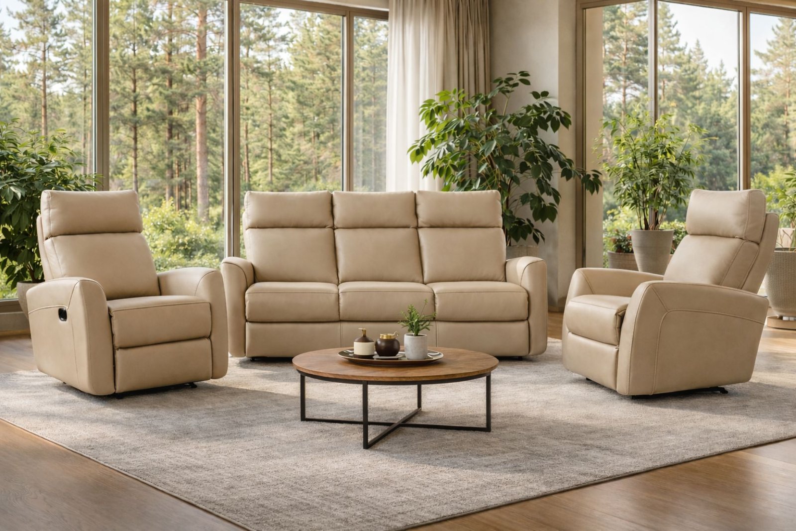 Palermo to synonim elegancji i stylu, który doskonale łączy w sobie komfort i nowoczesny design. Dzięki wygodnej funkcji relaksu, ten zestaw jest idealnym miejscem do odpoczynku po intensywnym dniu. Jego kompaktowe wymiary sprawiają, że świetnie sprawdzi się nawet w mniejszych pomieszczeniach, nie tracąc przy tym na wygodzie. Prosta, lecz wyrafinowana forma dodaje mu uniwersalności – będzie doskonale pasować zarówno do nowoczesnych, jak i klasycznych wnętrz. Dodatkowo, miękkie wypełnienie na bazie silikonu zapewnia wyjątkowy komfort, który otuli Cię po ciężkim dniu.