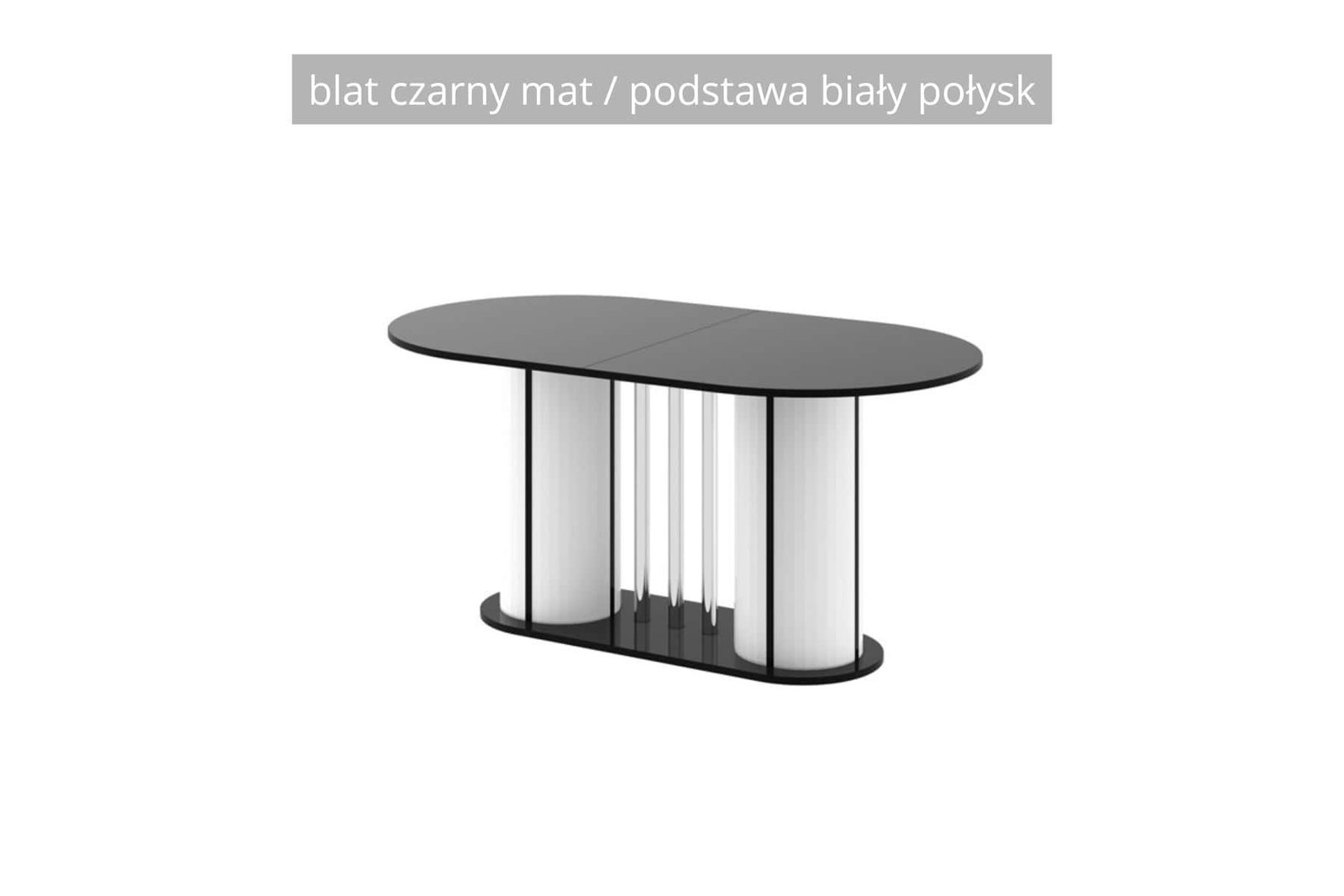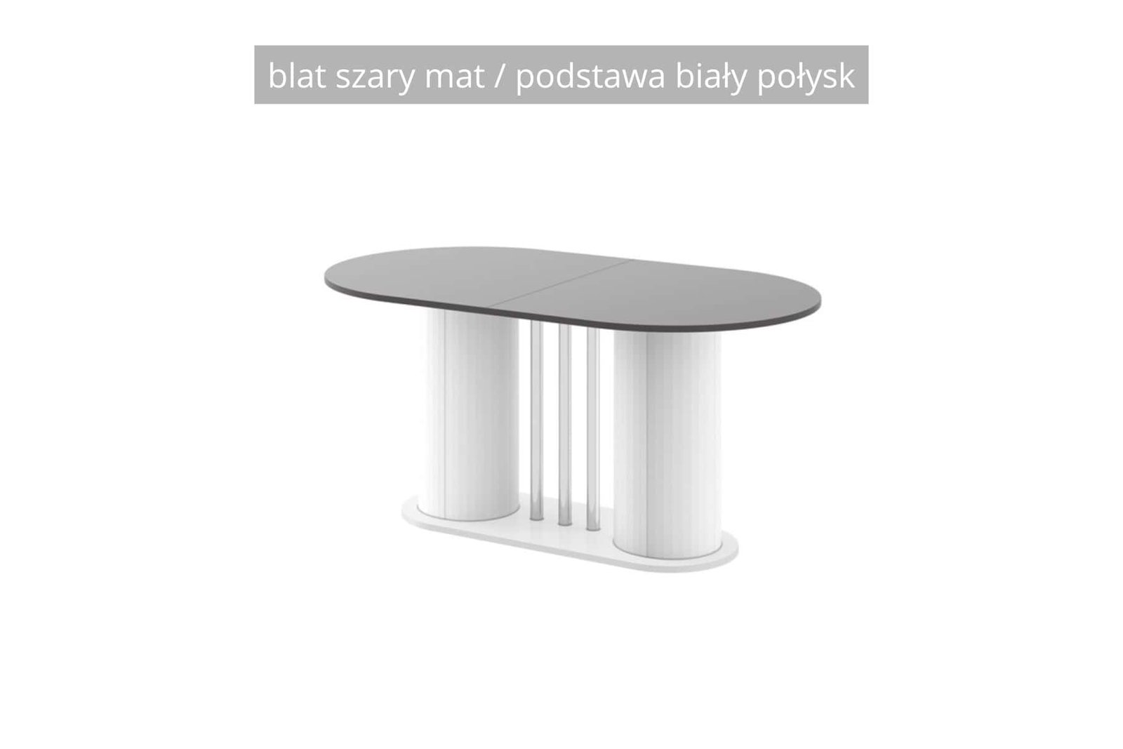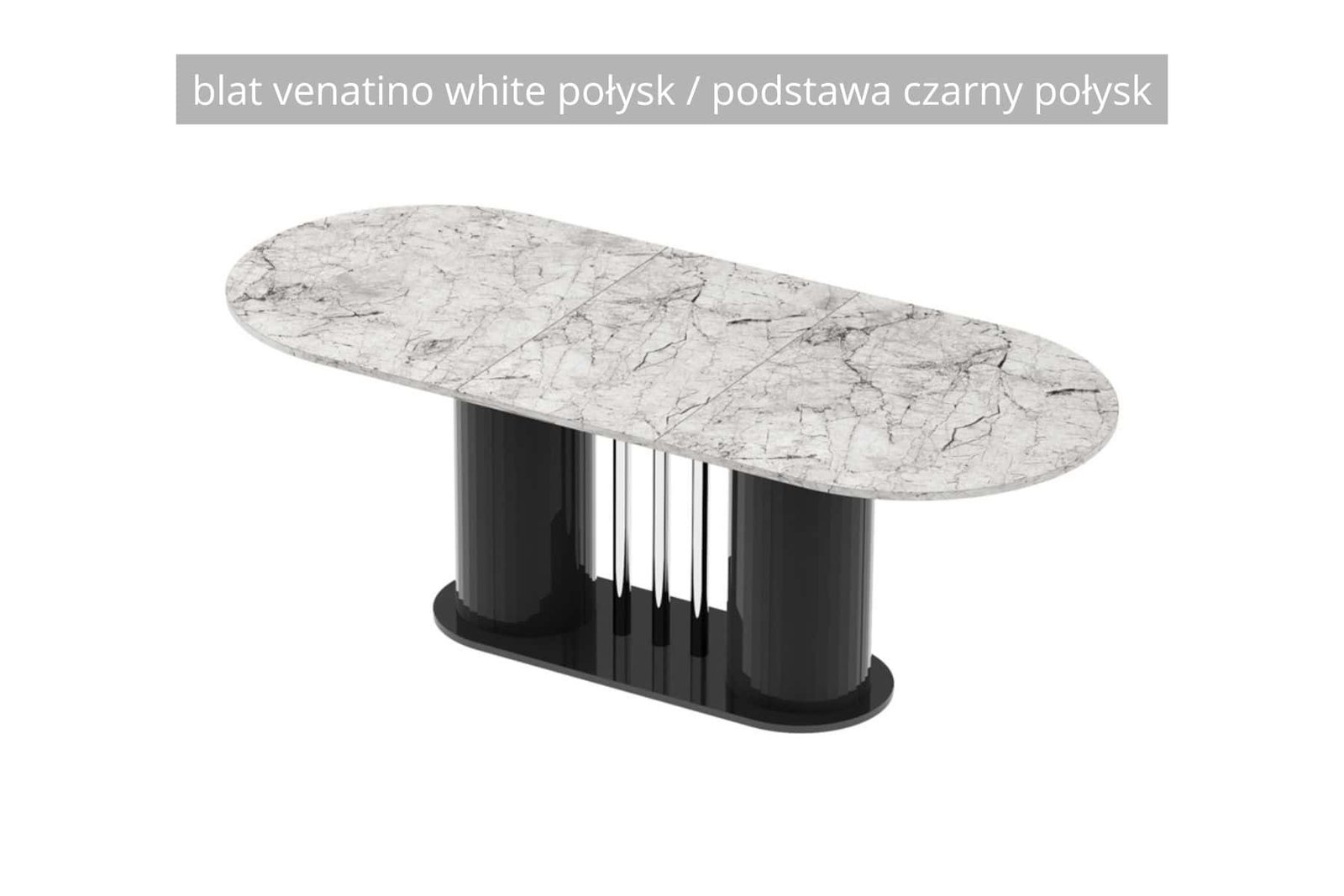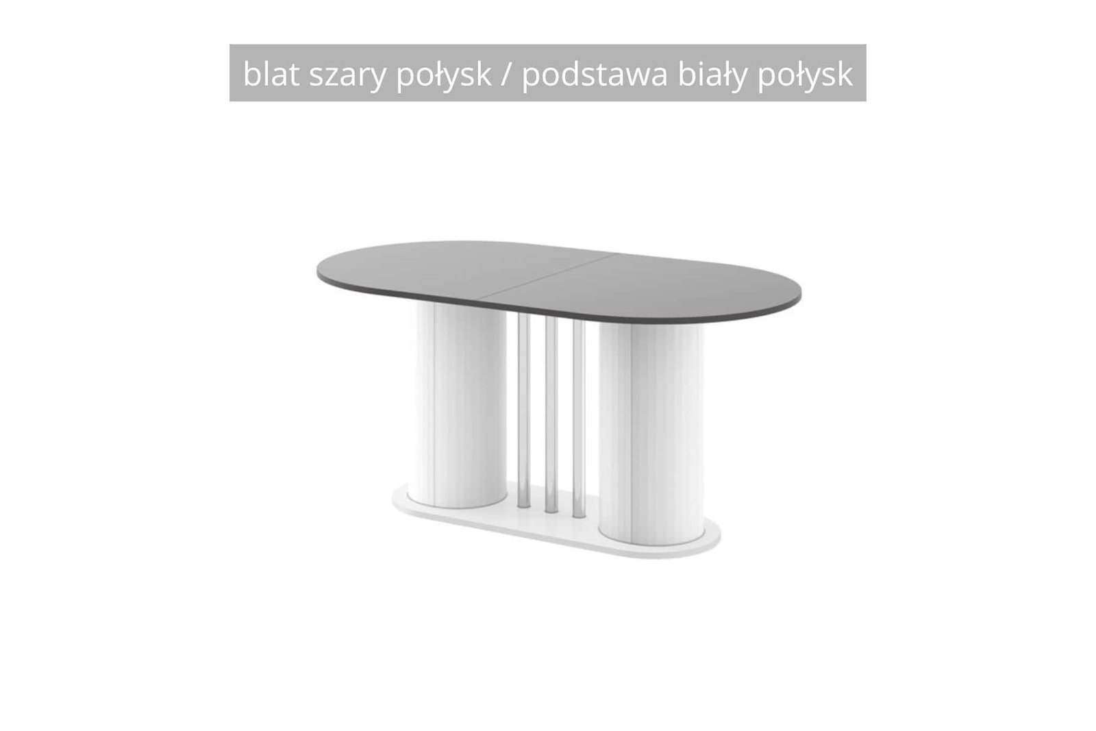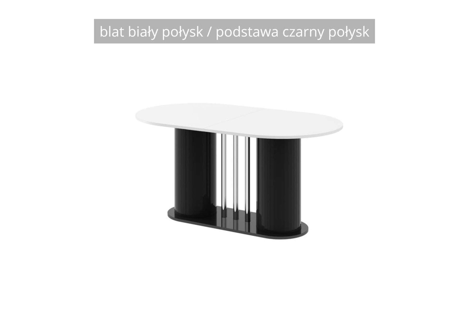 Stół CESARO to nowoczesna forma połączona z wysoką funkcjonalnością. Owalny w kształcie blat stołu opiera się na dwóch nowoczesnych kolumnach, pomiędzy którymi usytuowano eleganckie, ozdobne, chromowane rurki. Dzięki temu stół sprawia wrażenie delikatnej i finezyjnej konstrukcji, przy czym jednocześnie jest bardzo solidny, mocny i trwały. Swoim designem wpisuje się najnowsze trendy wzornicze w meblarstwie. Stół CESARO jest stołem bardzo praktycznym. Posiada funkcję rozkładania od 160 cm do 208 cm (jedna wkładka powiększająca chowa się pod blatem stołu).
