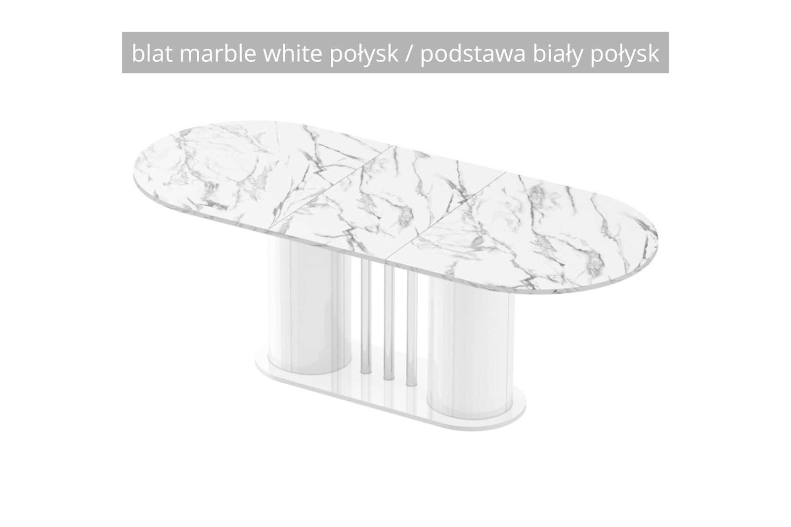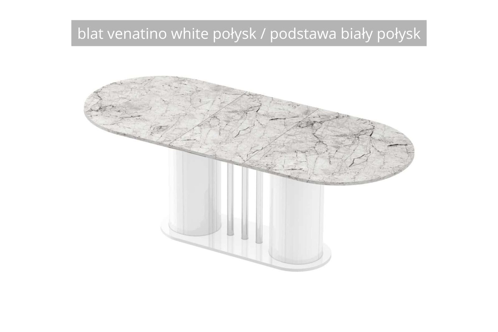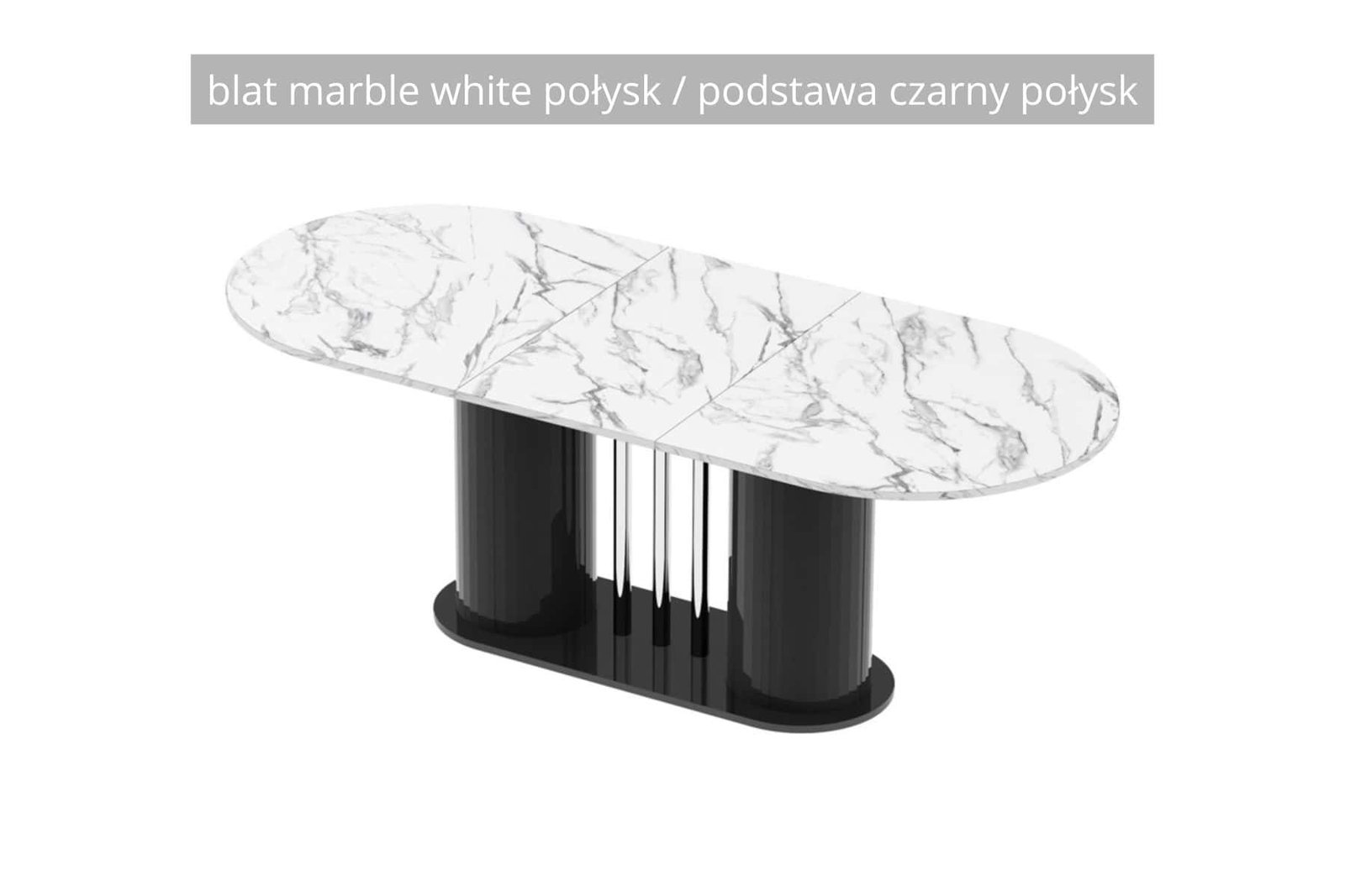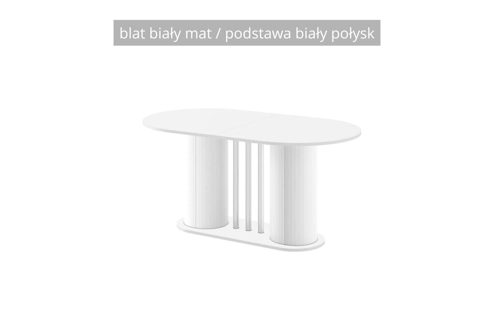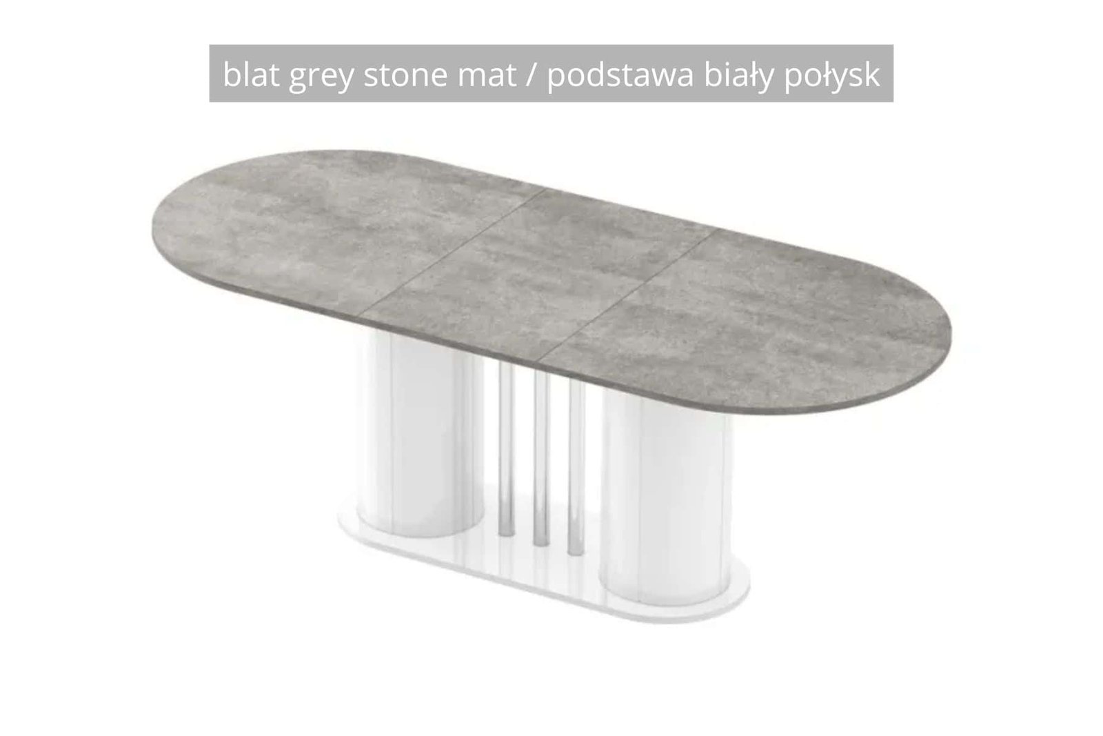Stół CESARO to nowoczesna forma połączona z wysoką funkcjonalnością. Owalny w kształcie blat stołu opiera się na dwóch nowoczesnych kolumnach, pomiędzy którymi usytuowano eleganckie, ozdobne, chromowane rurki. Dzięki temu stół sprawia wrażenie delikatnej i finezyjnej konstrukcji, przy czym jednocześnie jest bardzo solidny, mocny i trwały. Swoim designem wpisuje się najnowsze trendy wzornicze w meblarstwie. Stół CESARO jest stołem bardzo praktycznym. Posiada funkcję rozkładania od 160 cm do 208 cm (jedna wkładka powiększająca chowa się pod blatem stołu).