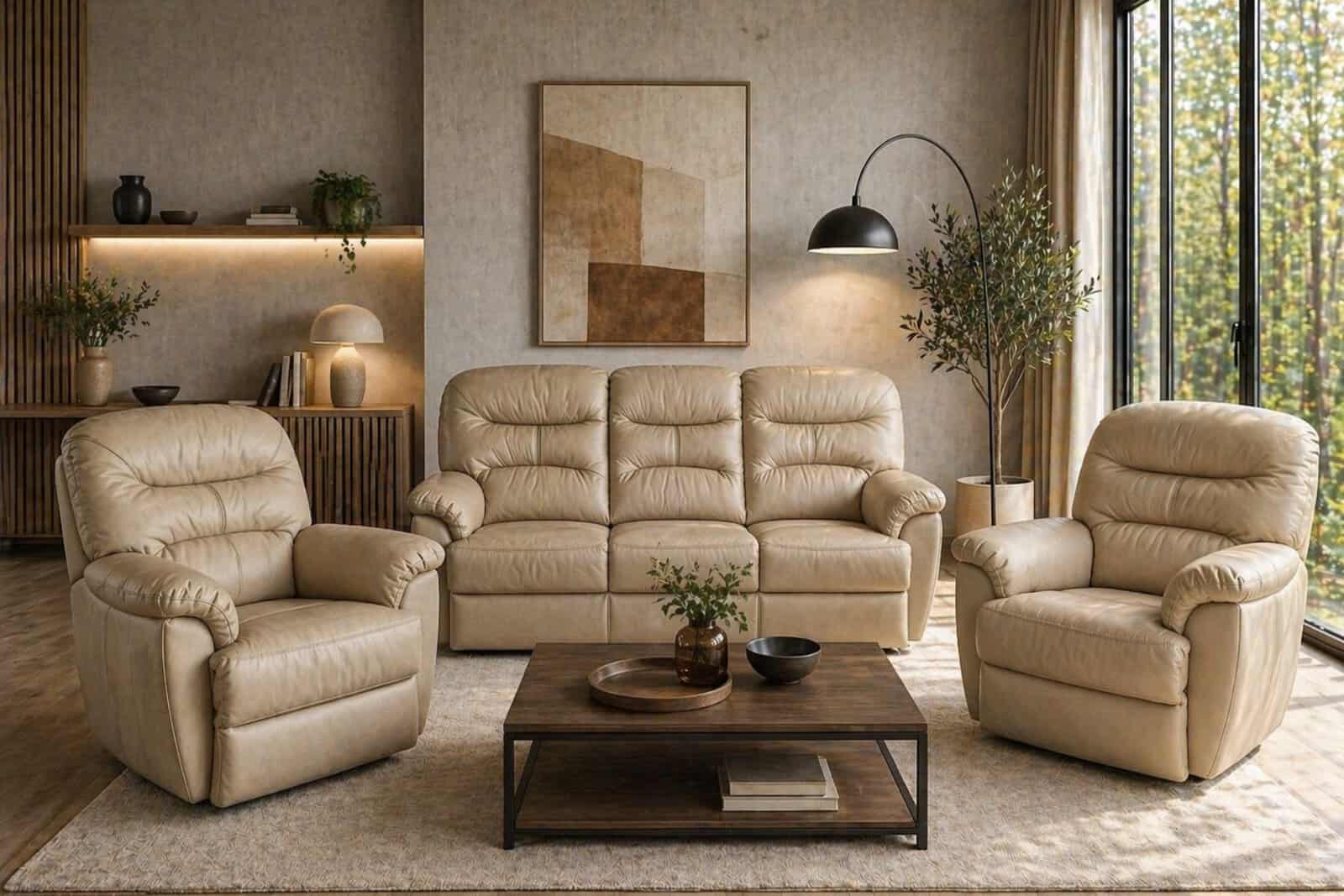 Tania II – zestaw wypoczynkowy ze skóry naturalnej z funkcją relaks oraz spaniem