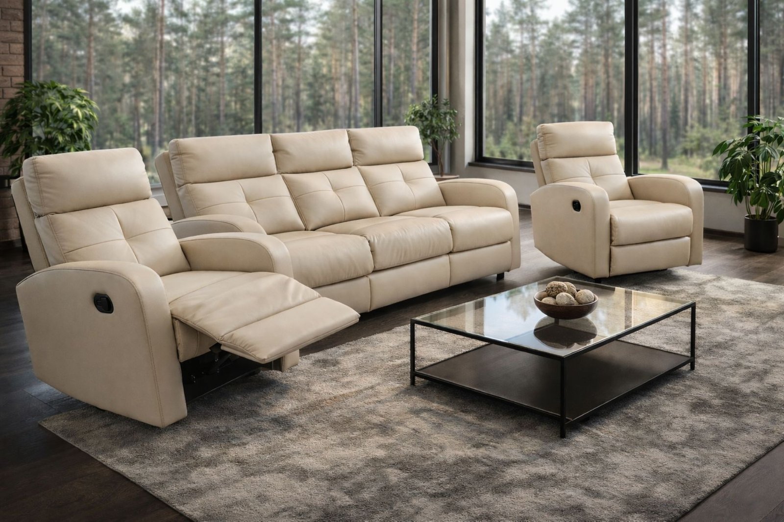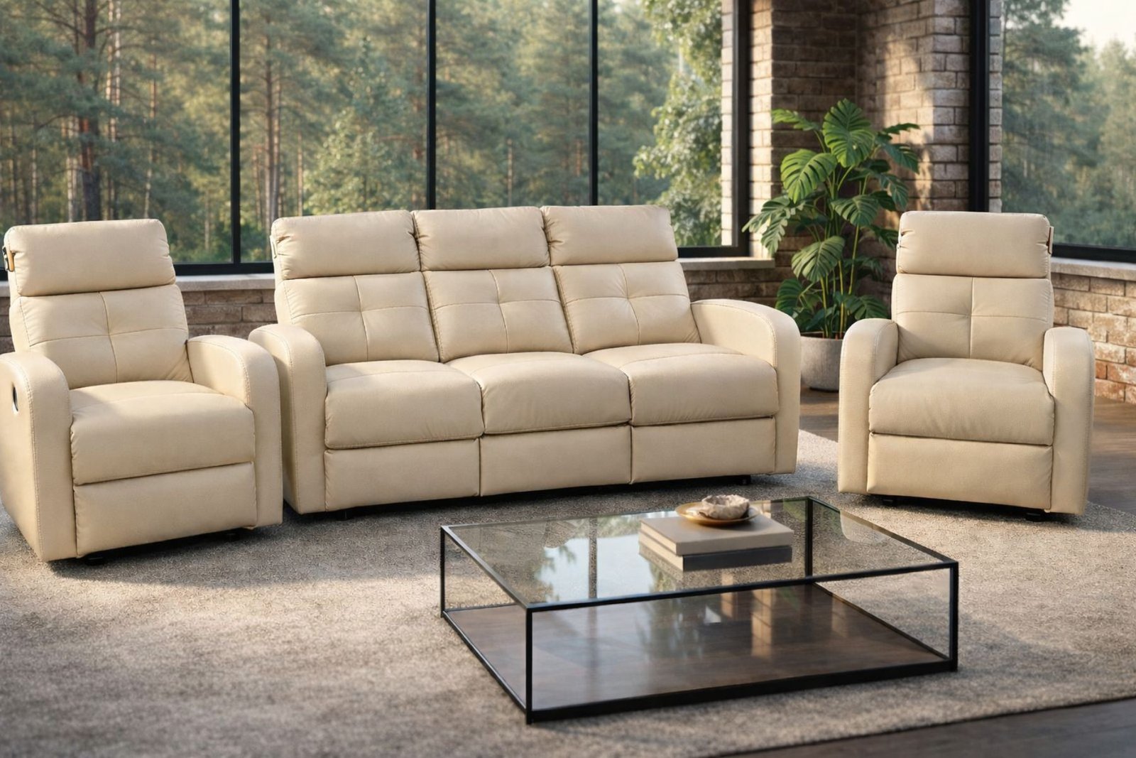 Elegancja i szyk to główne zalety kompletu Vivo. Posiada wygodne funkcje relaks w fotelach, idealne do wypoczynku po całym dniu. Dzięki niewielkim rozmiarom idealnie nadaje się do mniejszych pomieszczeń. Meble na wkładzie silikonowym – bardzo mięciutkie! Zastosowane funkcje relaks w naszych produktach to mechanizmy, które pochodzą z rynku amerykańskiego. Produkowane są przez firmę Leggett & Platt.